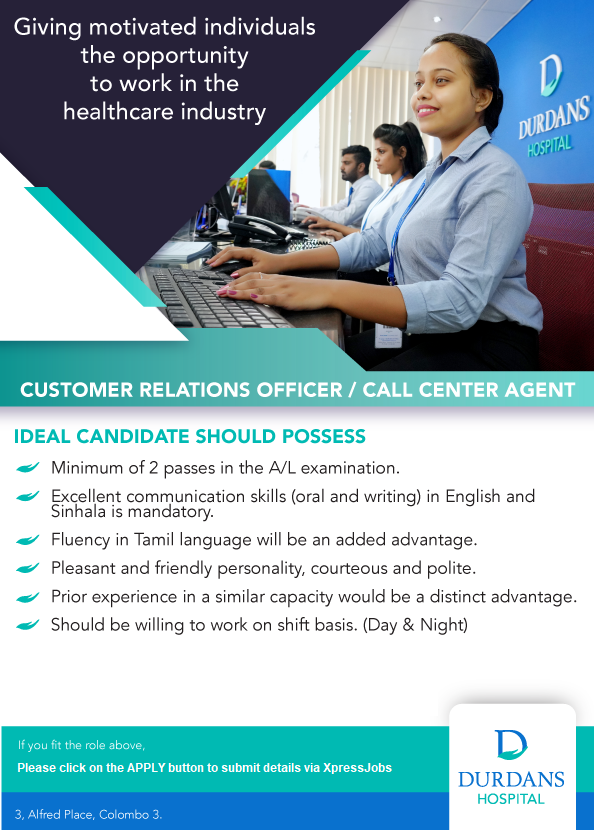 Walk In Interviews Customer Relations Officer Call Centre Agent Durdans Hospital Xpressjobs